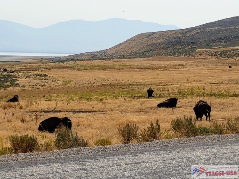 A questo punto, tornate indietro fino alla statua del bisonte colorato e prendete stavolta la strada che costeggia il lago sulla sponda est, in corrispondenza della baia di Farmington. Questa è la zona migliore per avvistare i bisonti, che incontrerete lungo il percorso in gran quantità e probabilmente anche da vicino (anche qui come a Yellowstone hanno il vizio di attraversare la strada). In quest’area se sarete fortunati potrete osservare anche qualche esemplare di antilocapra, uno degli animali terrestri più veloci al mondo, più difficile da avvistare rispetto ai bisonti, che si muovono in mandrie numerose. Qui sotto potete vedere qualche foto scattata alla fauna di quest’area: